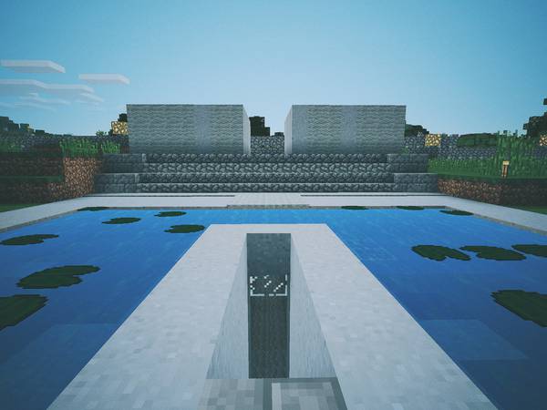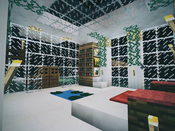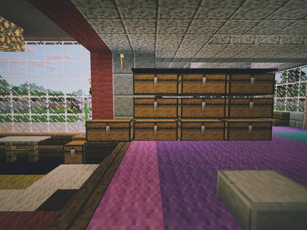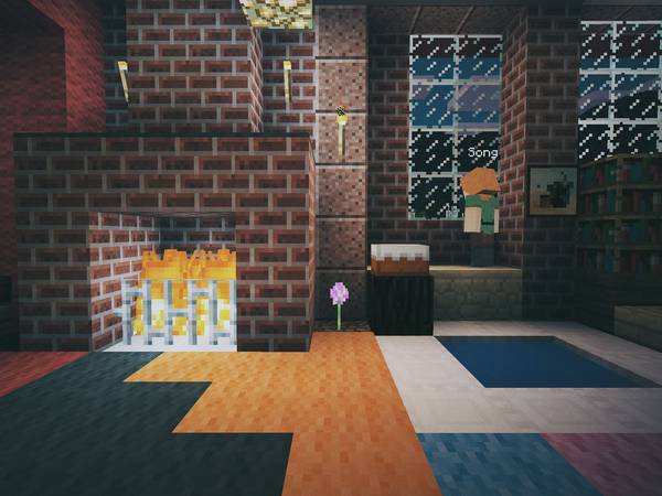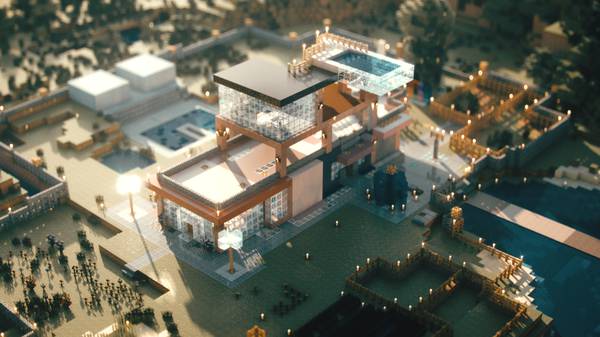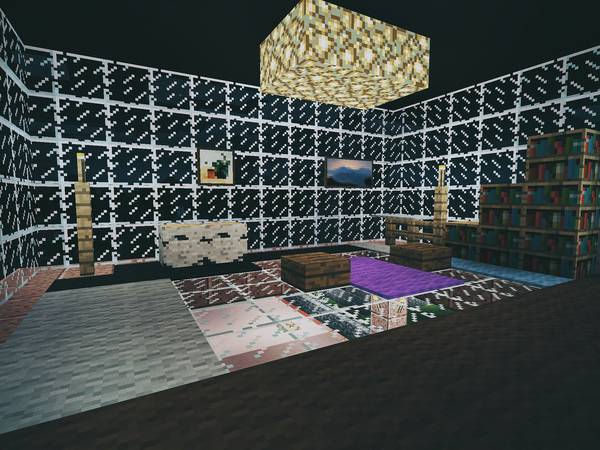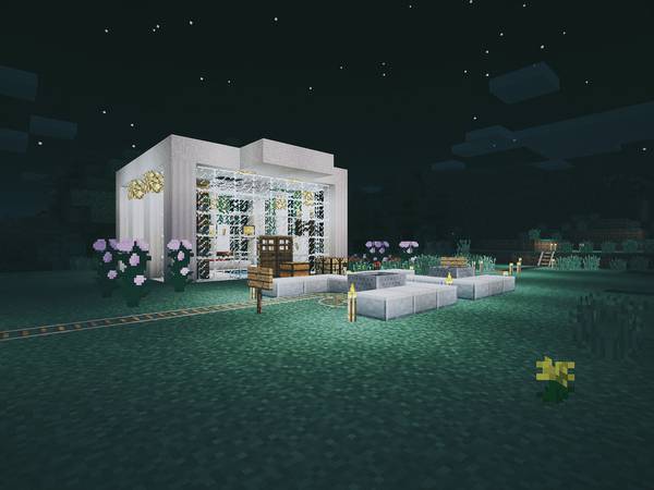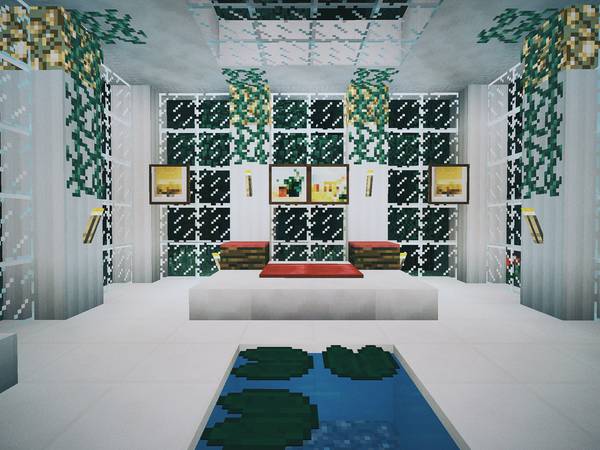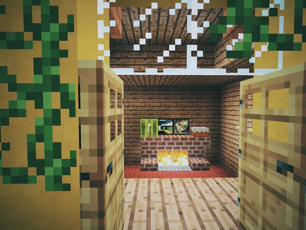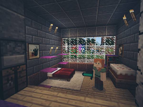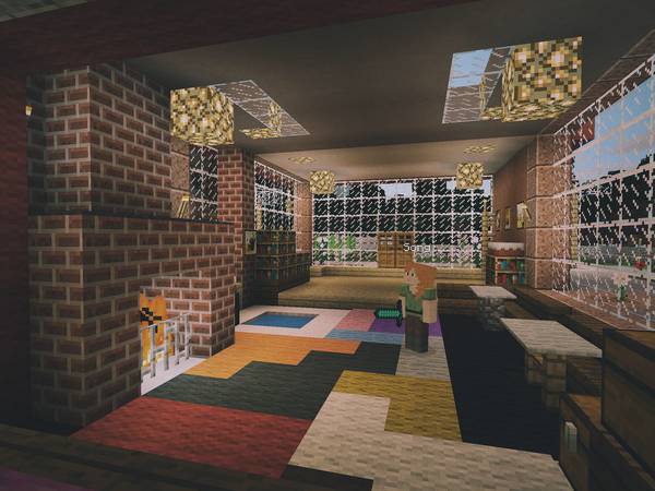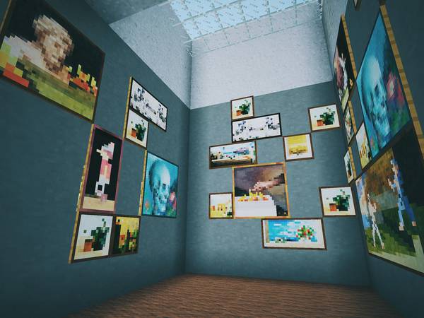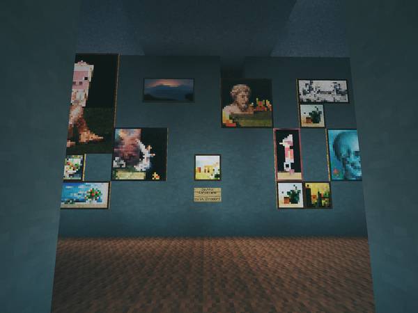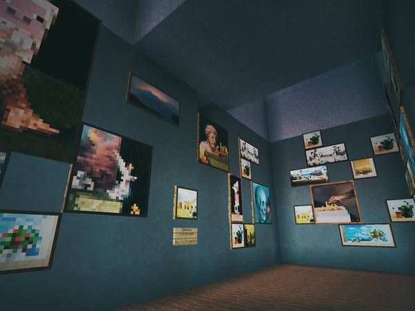 现实中我俩去别的城市旅游,喜欢逛逛美术馆、博物馆,所以在 Minecraft 后院里也垒了一个: