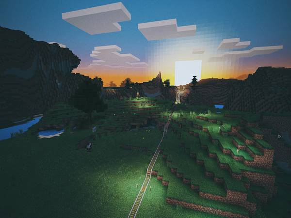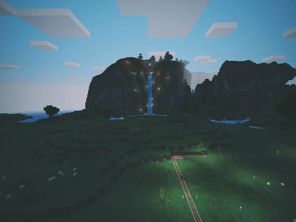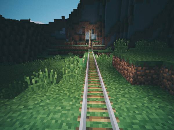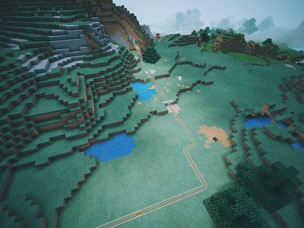 去年有段时间,我俩住在纽约,我每天下班路上比较无聊,就在地铁上打开 Minecraft 修铁路。修了好长好长:
