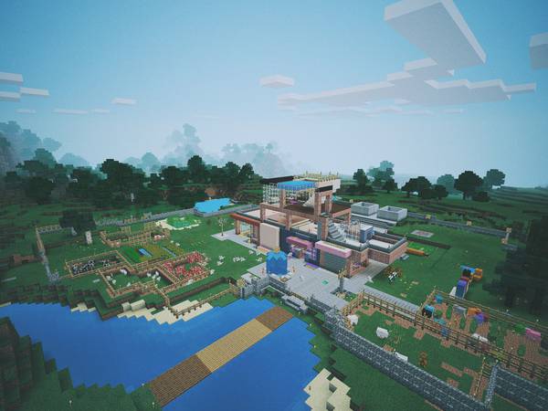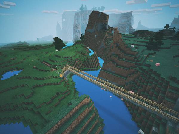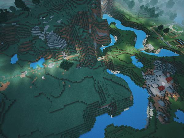 早期 Minecraft PE 还不支持无限世界的时候,我俩就开始在 iPad 上玩小地图,一发不可收拾。更新 0.9x 版之后,世界被转换成无限大小,顿时觉得打开了全新的选项。后来,生存模式世界和创造模式世界可以随意转换了,我俩要带孩子,没时间玩了,我抽空飞到天上拍了这批照片,终于能自由地从高处俯瞰我们的小世界了,还是挺开心的。