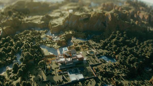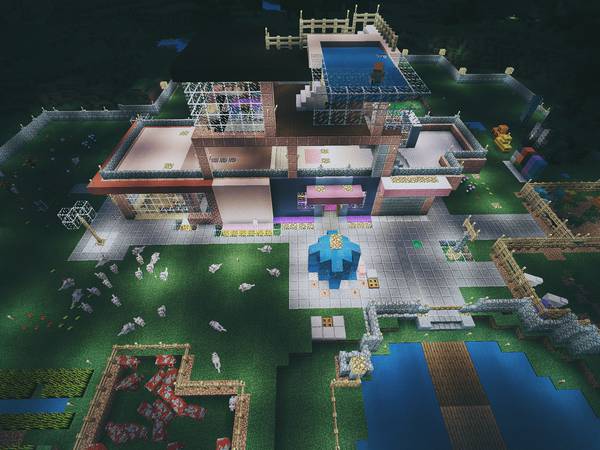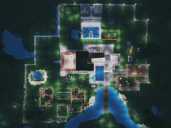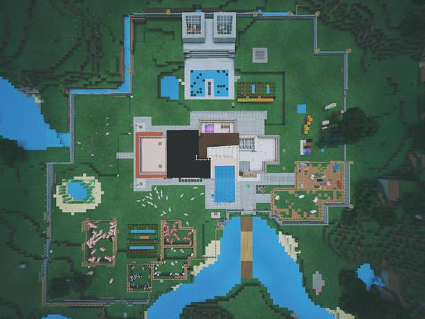 而我呢,一如既往地喜欢盖房子。院子越盖越大,从顶视图看是这个样子:
