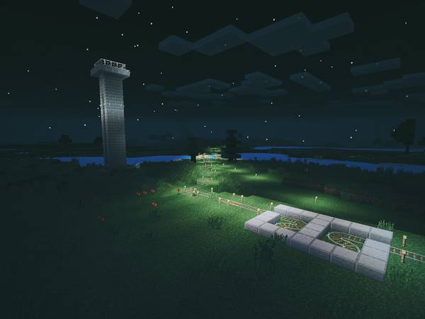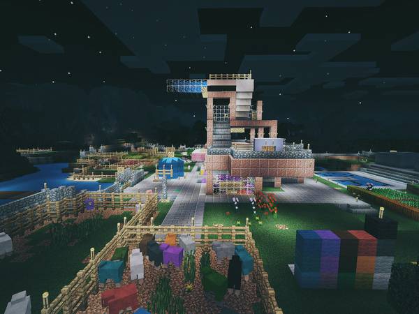 95% 的建筑都是我俩在生存模式里一砖一瓦垒起来的。剩下 5% 是后来 Minecraft 支持转换世界模式后,我在创造模式里搭建的特殊结构。