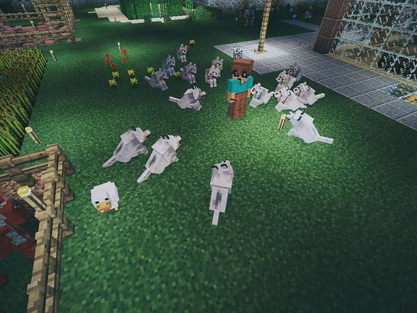 当然她也经常不自量力挑战 creeper 被炸死在野地里,我大半夜顺着她留在地上的火把一路找过去,把她吐了一地的装备捡起来带回家。