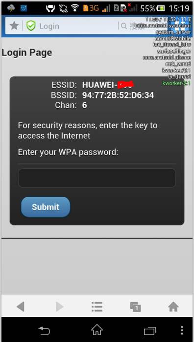 如果我们输入的密码是错误的,那么当 fluxion 验证之后我们还是不能上网,依然是如上图那样的键入密码的页面,当我们输入正确的密码的时候,fluxion 会自动结束程序并显示密码以及生成破解日志。程序结束后我们做的虚假 AP 自然就不见了,这时提交了真实密码的机器会自动连上真实的 AP 了,作为不知情的人来说,他们可能只是感觉信号不太好,不过后面又可以上网了,一般就没有人去追究了,熟不知自己的 wifi 密码已经落入他人之手。