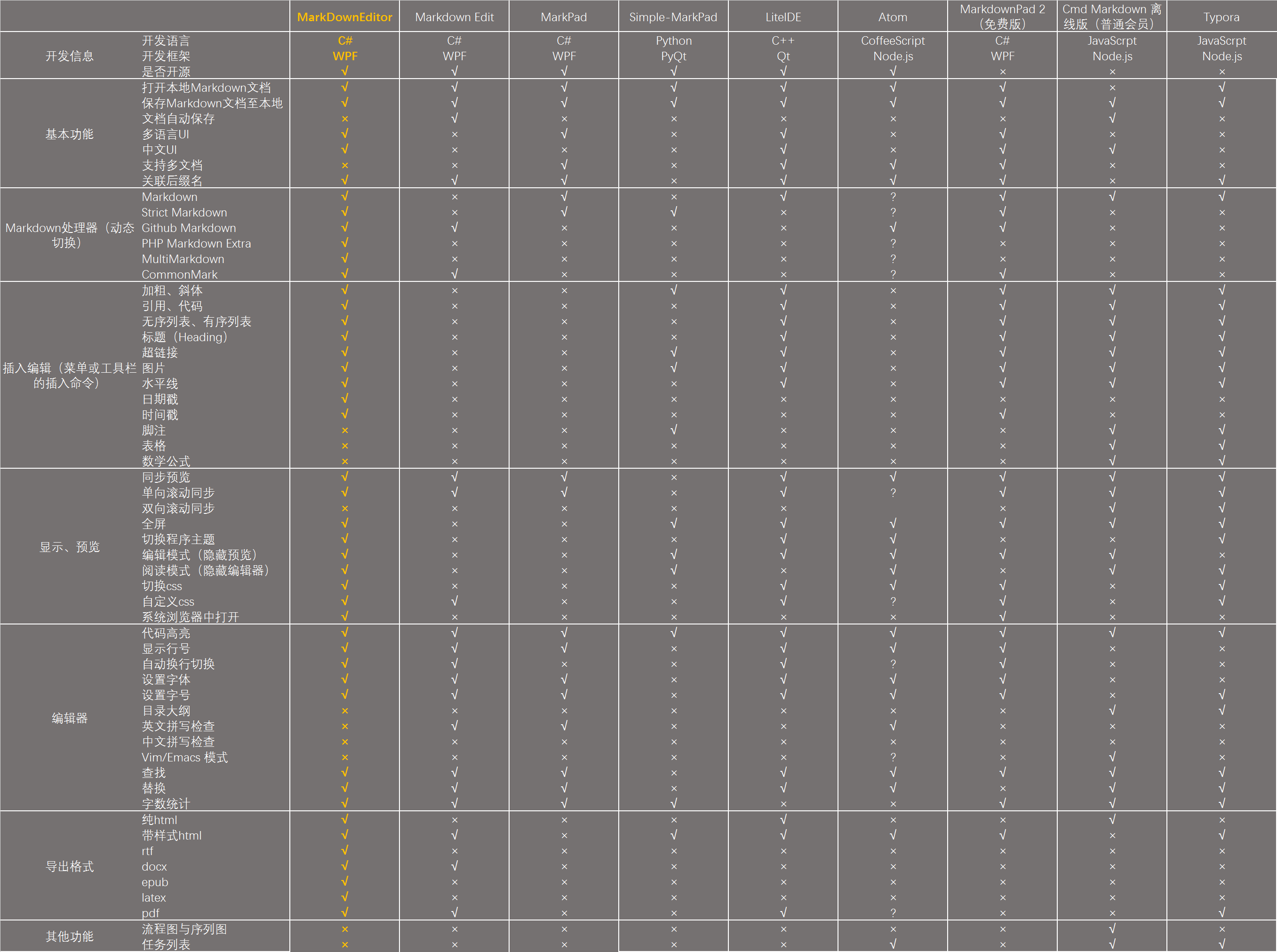 Markdown 本地编辑器对比 – windows