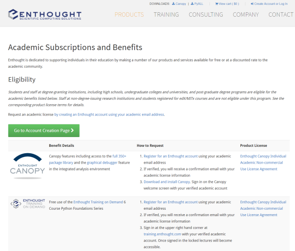 - Enthought的Python科学计算包和教程 Academic Subscriptions and Benefits
