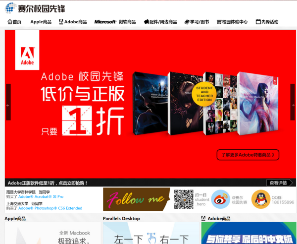有Microsoft,Adobe, Apple等系列软硬件,Paralles Desktop软件(Mac上虚拟机)的优惠