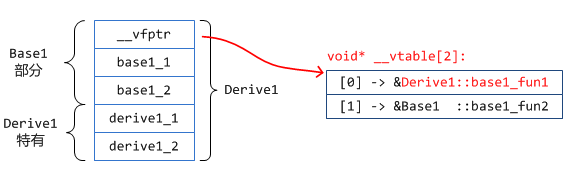 b_p->base1_fun1(); // 调用子类虚函数